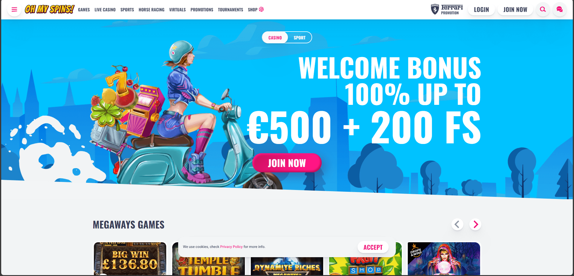 OhMySpins offers a great selection of gaming activities. They collaborate with over forty developers, including some of the most well-known in the field. More than 3000 casino games are available for you to select from, including video slots, baccarat, roulette, jackpots, Megaways, poker, and more. Additionally, they provide a huge selection of betting markets in stadiums for almost all major and minor sporting events held around the world, both live-streamed and before the game. You can also wager on virtual and Esports sports.
