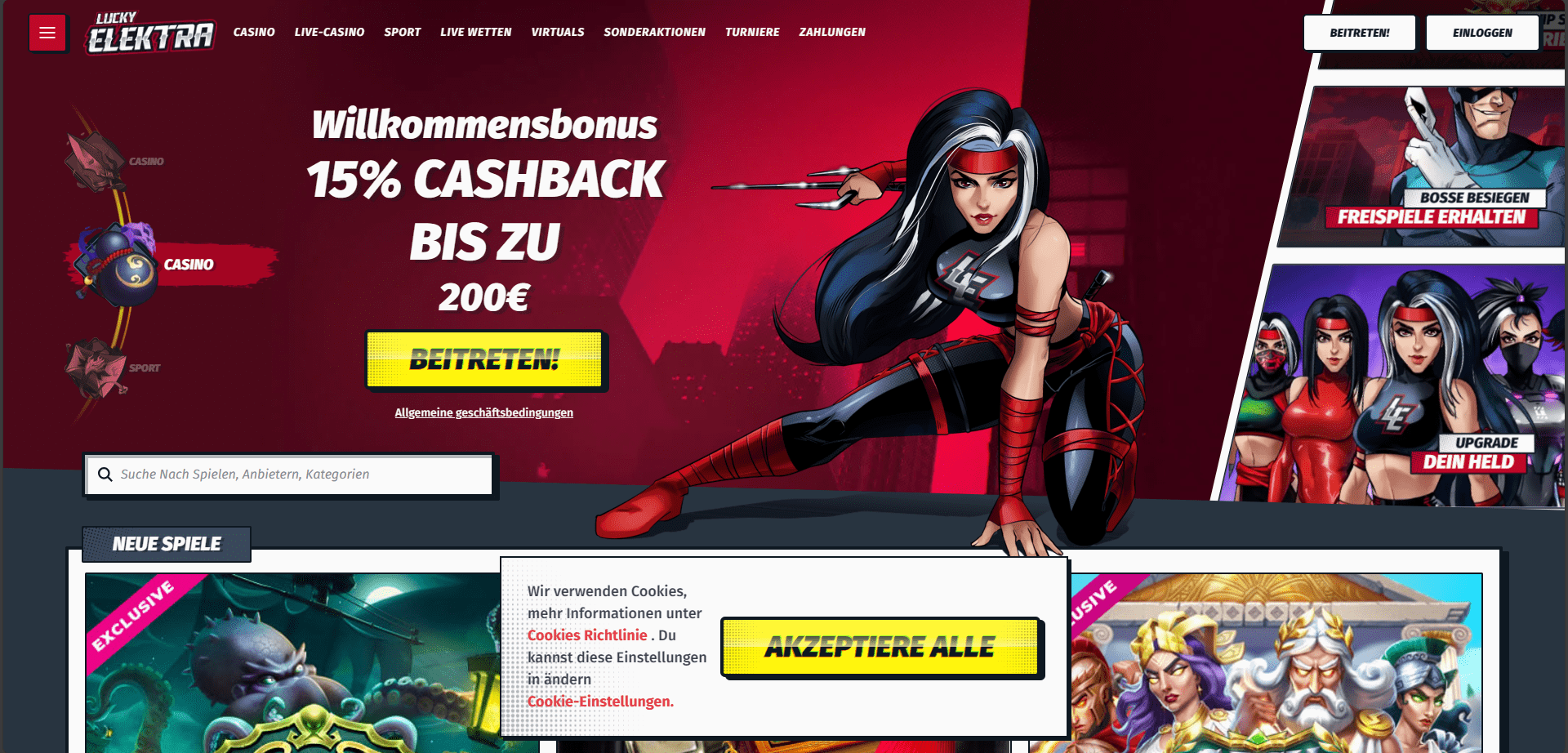 Bei Lucky Elektra können Sie aus Hunderten von Slot-Titeln und verschiedenen Casinospielen wie Baccarat, Blackjack, Roulette, Videopoker und anderen wählen. Sie bieten außerdem zahlreiche Pre-Match- und In-Play-Märkte für große und kleinere internationale und lokale Sportveranstaltungen an. Das Casino akzeptiert auch Wetten auf virtuelle Sportarten wie Fußball, Tennis, Basketball und mehr.