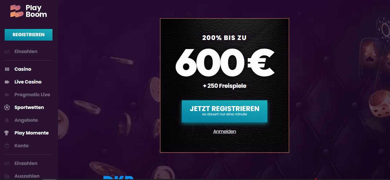 Play Boom Casino ist ein brandneues Online-Casino, das seine Türen für Besucher aus Kanada, den Niederlanden und einigen anderen Ländern öffnet. Von dem Moment an, in dem Sie die Website besuchen, werden Sie völlig fasziniert sein. Die Grafik ist absolut fantastisch, die Auswahl an Spielen besteht aus brandneuen Titeln und natürlich auch aus bekannten Titeln. Noch wichtiger ist, dass es einen Willkommensbonus gibt, aber darauf werden wir gleich eingehen. Das einzige große Problem, das wir derzeit bei dem Casino sehen, ist das Fehlen einer angemessenen iGaming-Lizenz, das wir im folgenden Abschnitt zur Sicherheit besprechen werden